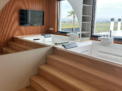 Veshje me parket druri ne ambient te jashtem lokali