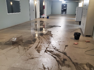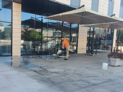 Pastrim profesional i pllakave te betonit ne ambient te jashtem lokali