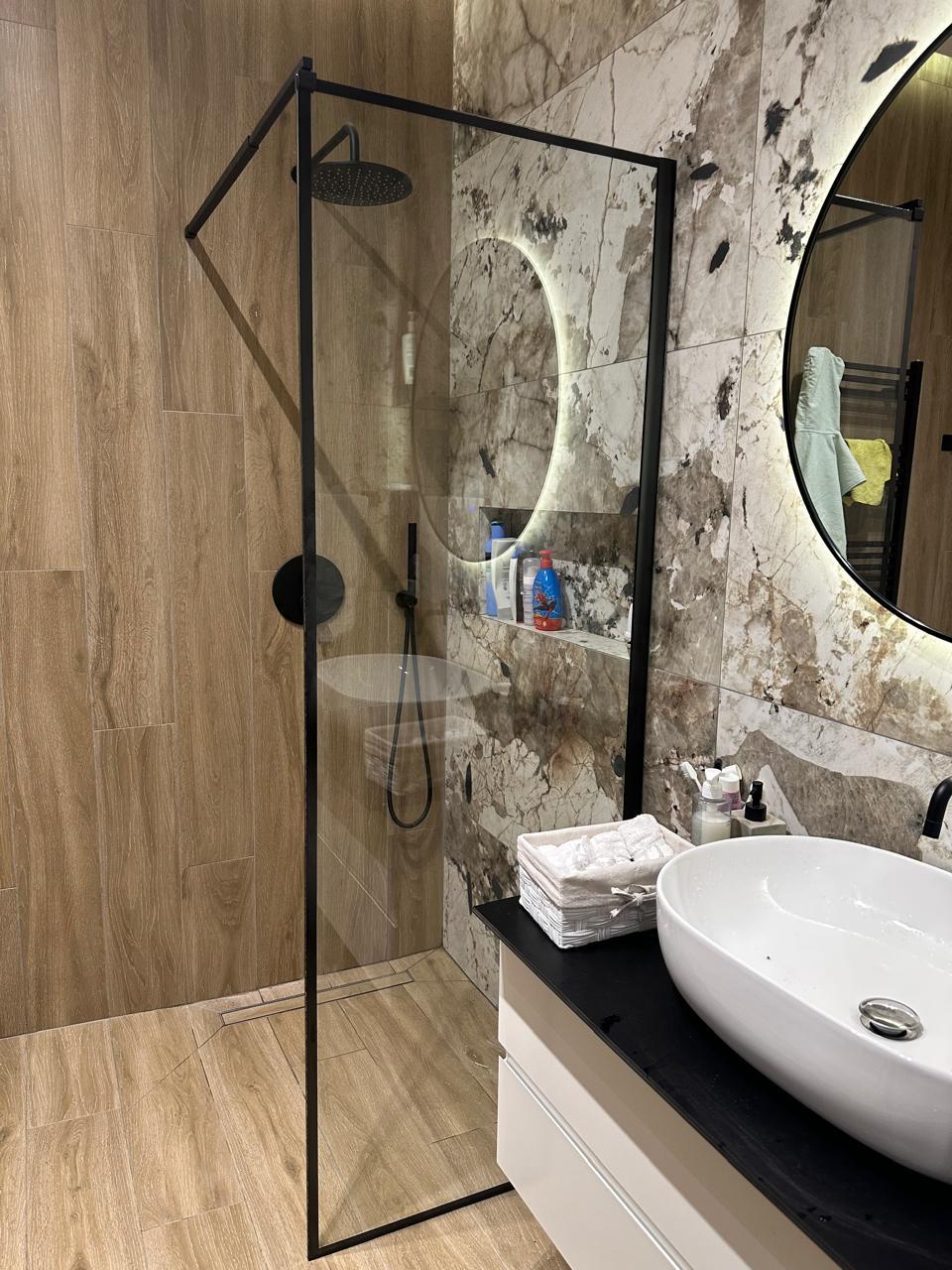 - Pllaka dushi, xhama ndarës dhe salishente funksionale e estetike;
