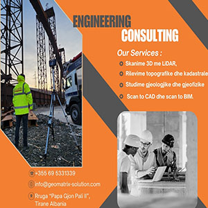 - Mbjedhje te dhenash dhe modelim Gjeo Hapësinor 2D/3D (Gjeodezi/Gjeologji/Gjeofizike/Monitorim/BIM)