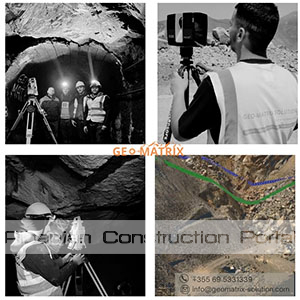 Në industrinë minerare, kompania ka kryer matje topografike dhe volumetrike në minierat e Bulqizës, Batër, Krastë, Cërujë e të tjera, duke përdorur instrumeta si Total Station, LiDAR, Laser Scanner për modele të sakta dhe të vizualizuara në software CAD/GIS.