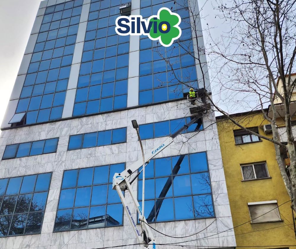 4. Pastrime Fasadash: Pastrime Silvio është e specializuar në pastrimin e të gjitha llojeve të fasadave. Prej disa vitesh ajo e ushtron këtë aktivitet me profesionalizëm. Pastrimin e këtyre fasadave, Pastrime Silvio, e realizon me produktet (detergjentët dhe materialet e pastrimit), makineritë (vinçi me kosh 21 metra, 35 metra dhe vinçi i varur) dhe personelin e vet.