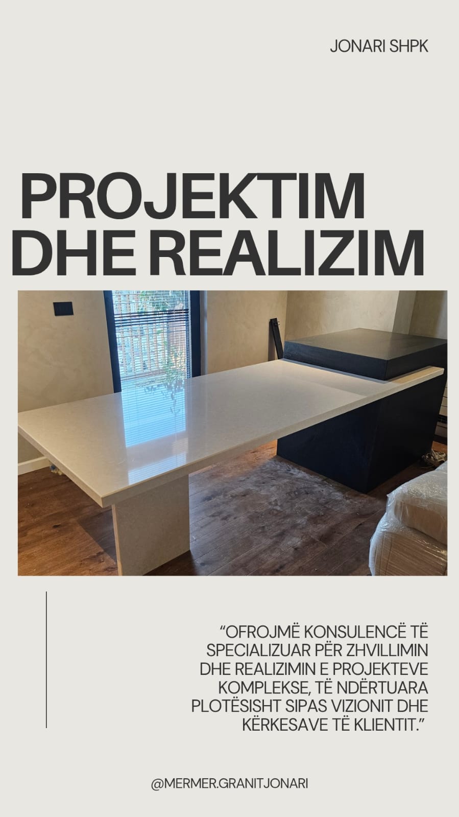 JONARI Sh.p.k ofron zgjidhje të plota në mermer, granit dhe kuarc për ambiente të brendshme dhe të jashtme, me cilësi të lartë dhe dizajn modern.