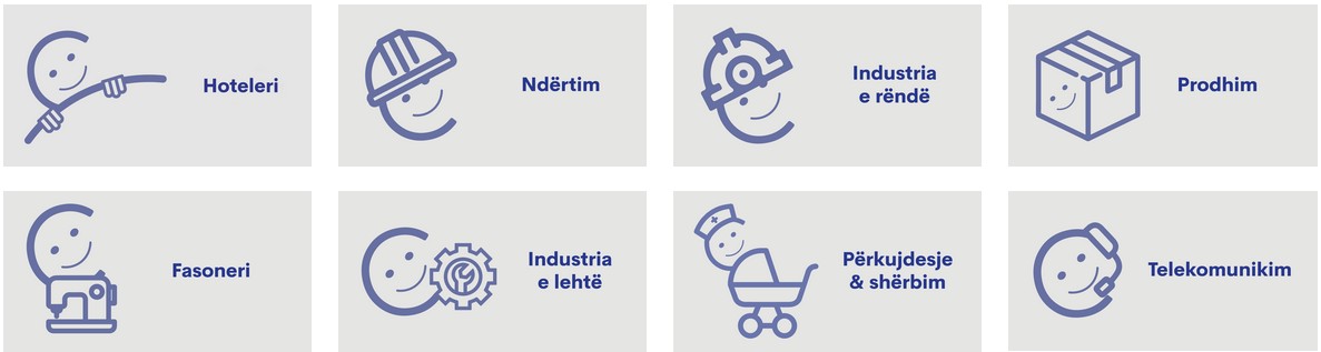 Inxhinier prodhimi, Inxhinier CNC, Elektricist, Manovrator, Saldator, Hidraulik, Montator, Karpentier, Specialist prodhimi (alumin, plastik, etj), Specialist mermeri, Specialist gipsi, Bojaxhi, Marangoz, Tapicier, Punëtor magazine, Punëtor krahu.