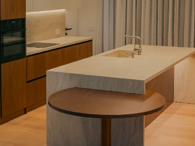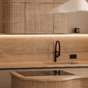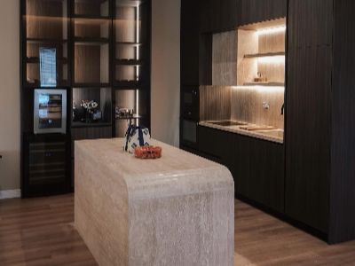 Kuzhine gatimi e realizuar me Travertine Romano