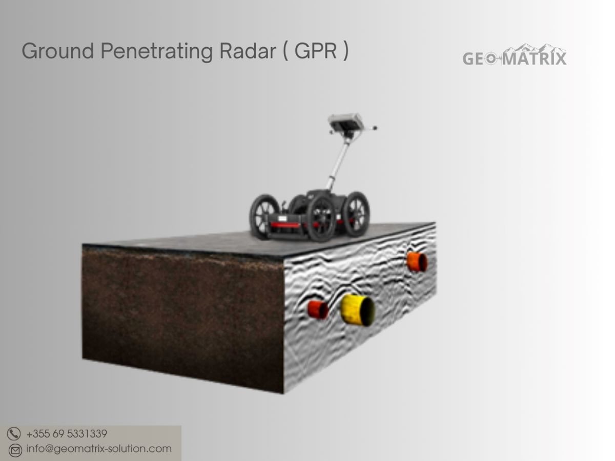 GPR (Ground Penetrating Radar) është një metodë e avancuar e rilevimit që përdor vale elektromagnetike me frekuencë të lartë për të skanuar nëntokën. Pajisja dërgon impulse drejt sipërfaqes së tokës përmes një antene. Kur valët hasin një objekt ose ndryshim në densitetin e materialit (si tub, kabull, beton apo zbrazëti), ato reflektohen dhe rikthehen te antena.