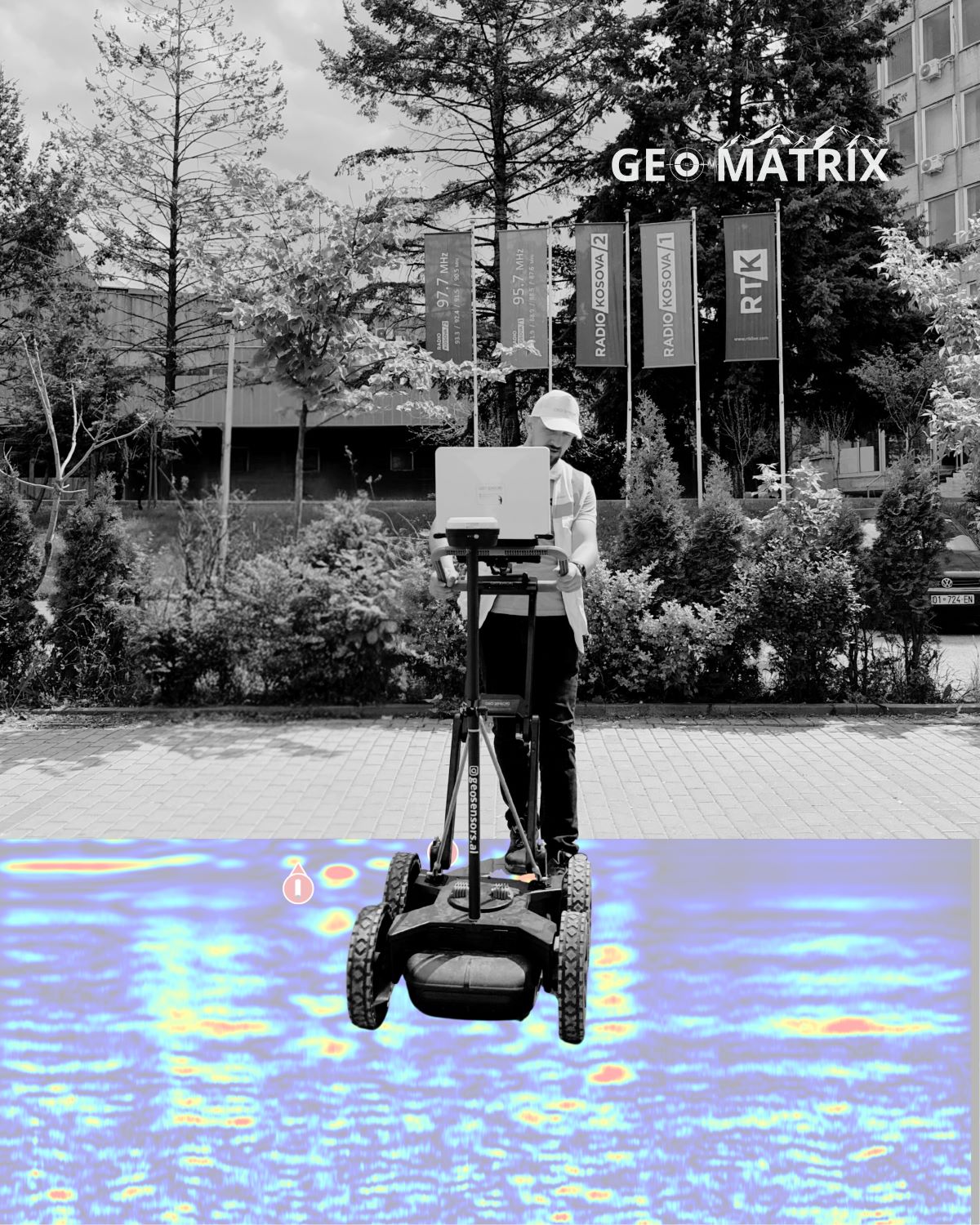 Të dhënat përpunohen në kohë reale për të krijuar pamje të detajuara 2D dhe 3D të shtresave nëntokësore. Kjo metodë nuk kërkon gërmime fizike dhe mund të përdoret në një gamë të gjerë sipërfaqesh — nga asfalt dhe beton, deri te toka natyrore ose zona historike me ndjeshmëri të lartë.